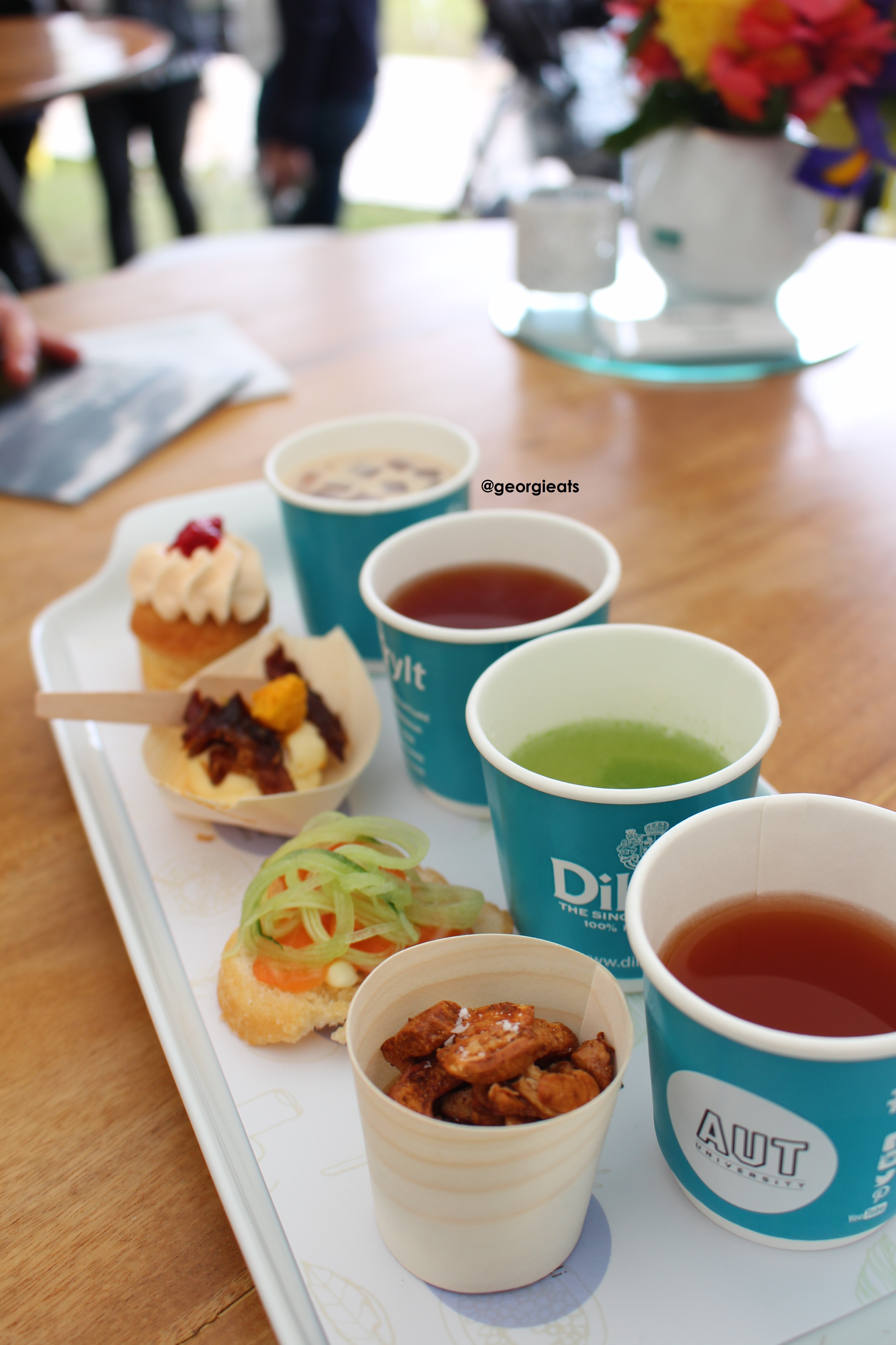 – Dilmah Tea Garden. We tried their tasting plate. It consisted of four Dilmah teas and four small bites made by AUT University students. It was delicious!